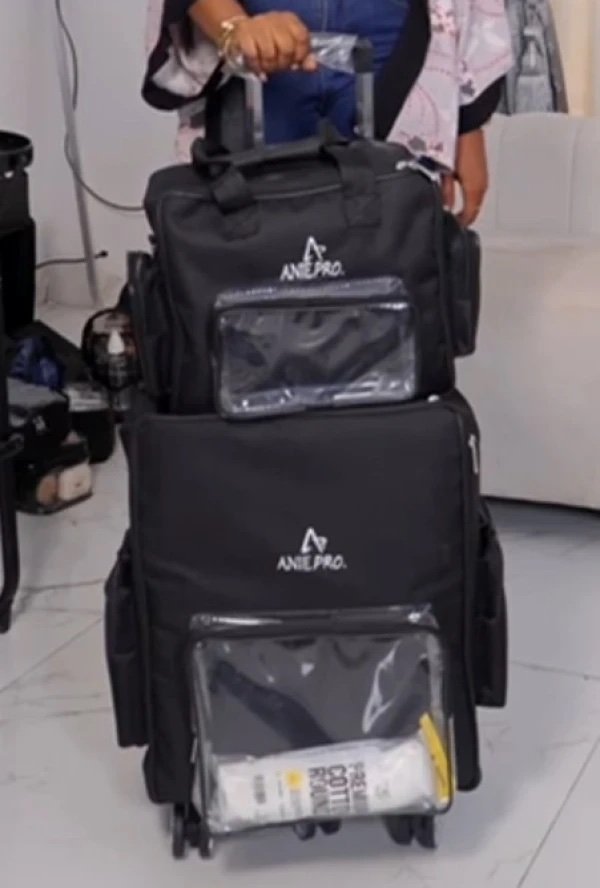 Le **Sac maquillage MAXI BAG 2 in 1 GRAND modèle** de la marque **ANIE PRO** est un sac de rangement conçu spécialement pour les professionnels de la beauté ou les passionnés de maquillage. Ce modèle grand format offre une solution pratique et élégante pour organiser et transporter vos produits de maquillage en toute sécurité.